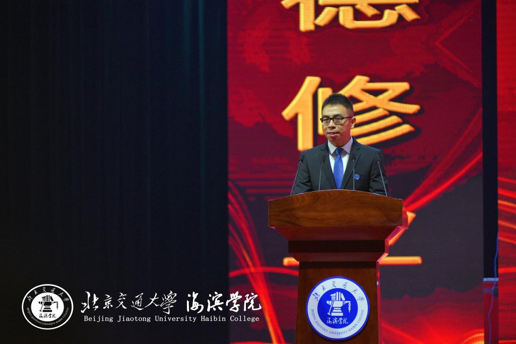 北京交通大学副校长关忠良首先代表北京交通大学向十岁芳华的海滨学院致以节日的问候,向我校领导班子以及教职工和海滨学子致以祝贺。他提出三点希望:一是希望海滨学院继续坚持立德树人的根本任务,认真总结办学经验,将自身打造成为名副其实的人才培养高地。二是希望海滨教职工队伍继续做好传道授业,努力承载起传播知识、传播真理、传播思想、塑造灵魂、塑造生命、塑造新人的时代重任。三是希望海滨学子响应国家号召,珍惜时光,努力成为德智体美全面发展的佼佼者,努力成为社会主义合格的建设者和接班人。他还表示,北京交通大学将一如继往地关注关心和支持海滨学院的发展,助推海滨学院各项事业的新跨越。