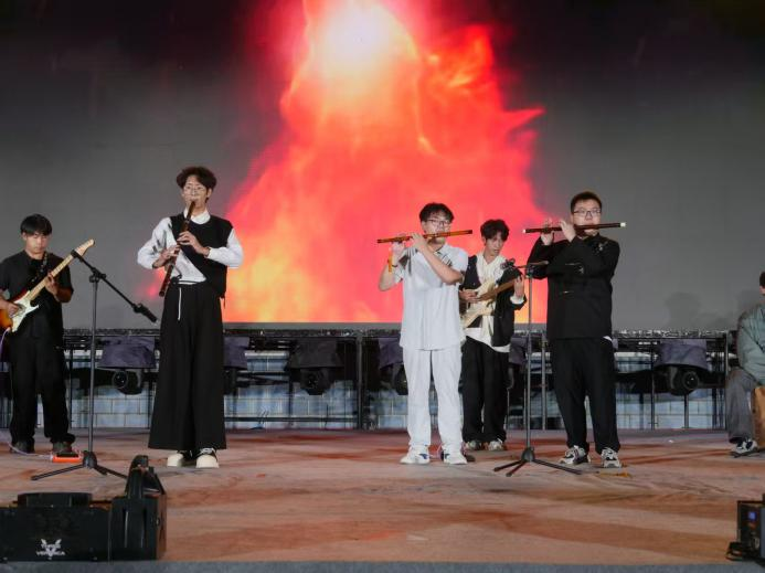 晚会通过三个篇章的多样艺术形式,展现了我校学子昂扬向上的精神风貌与深厚的家国情怀。