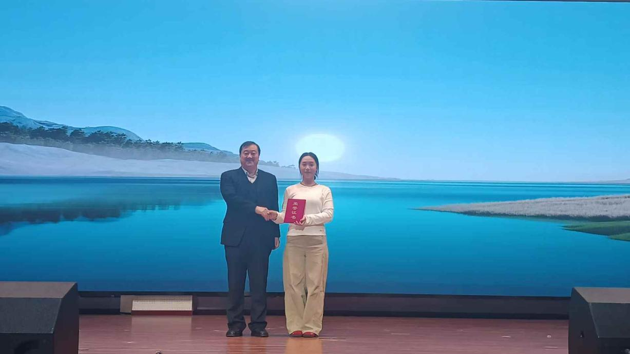 河北省莎士比亚学会会长李正栓教授为《错误的喜剧》剧组颁发一等奖
