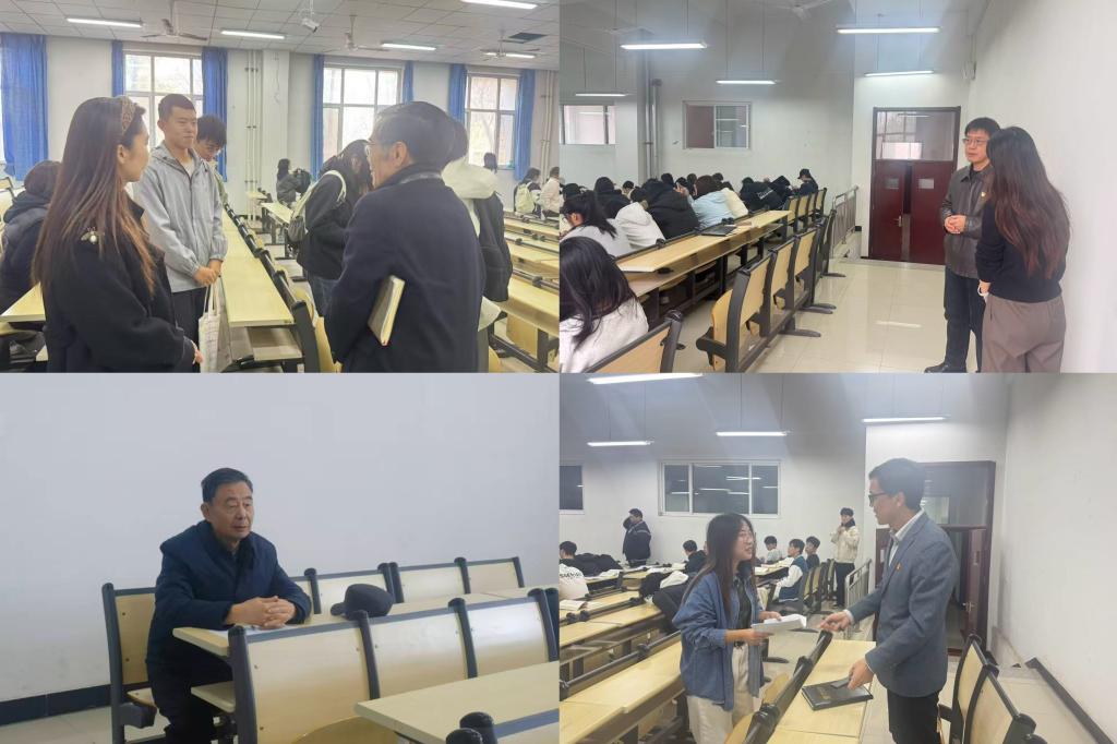 为深入贯彻落实新时代高校思想政治理论课建设要求,全面提升思政课教学质量与育人实效,扎实推进“大思政课”体系建设,新学期以来,我校成立思政课教学指导组,由校长章梓茂、党委书记庞更新担任组长,副校长赵金楼、副书记吴立军担任副组长,全面深入思政课堂开展听课调研与教学指导。