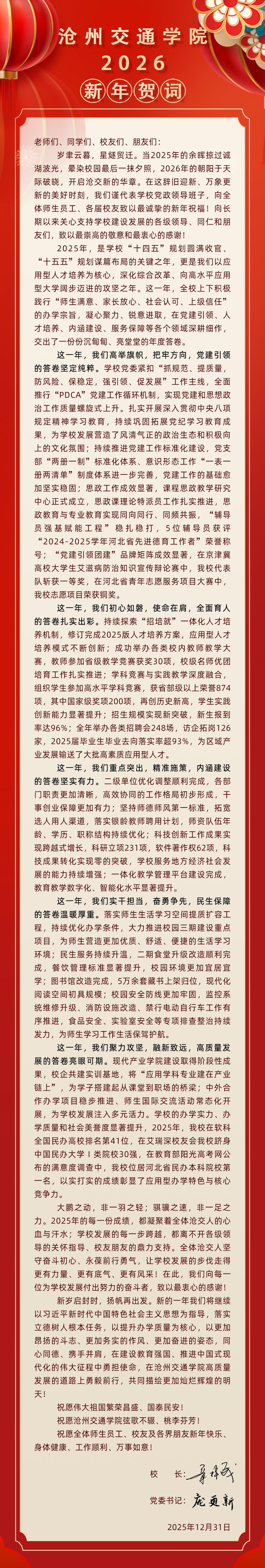 沧州交通学院2026年新年贺词